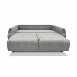 - Вместительный бельевой ящик — расположен под сиденьем и легко открывается при раскладке. Это место для размещения постельного белья, пледов, сезонной одежды или подушек
