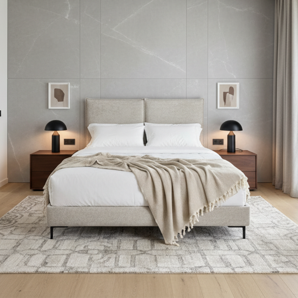 В обивке корпуса используется наша мебельная ткань Glanz — обладает приятными тактильными свойствами и интересной переливающейся фактурой. Добавьте функциональность в свою спальню с нашей новинкой!