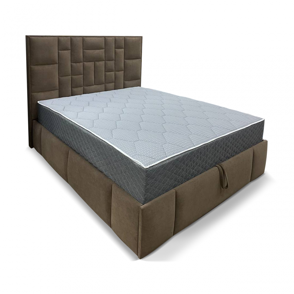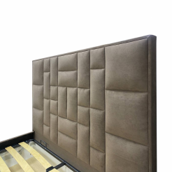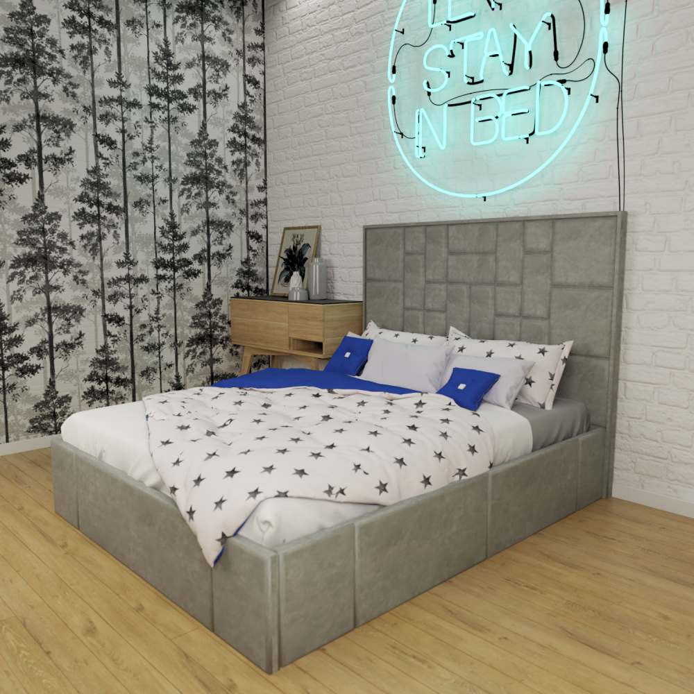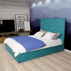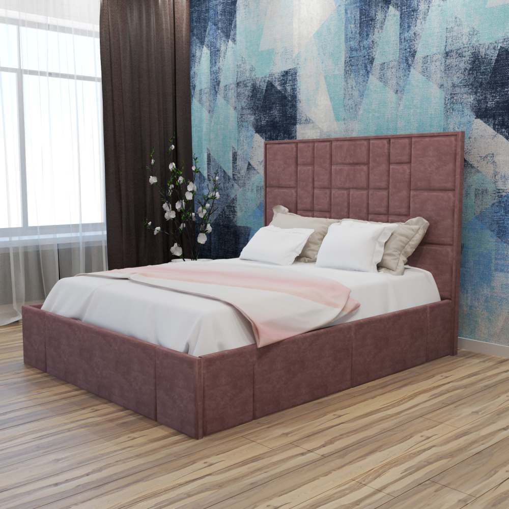 С высокой двуспальной кроватью "Larsen" вы получите - много комфорта. А если ещё с подъемным механизмом, то вы приобретете дополнительное место для хранения. Благодаря симметричному геометрическому рисунку на изголовье с велюровой обивкой, с наполнением из пенополиуретана. Эта спальное пространство придает современный вид традиционному дизайну в интерьере. Изготовлена из ламинированной древесно-стружечной плиты. Изготавливаем в разных цветах и размерах. Матрас приобретается отдельно.