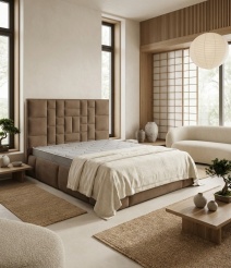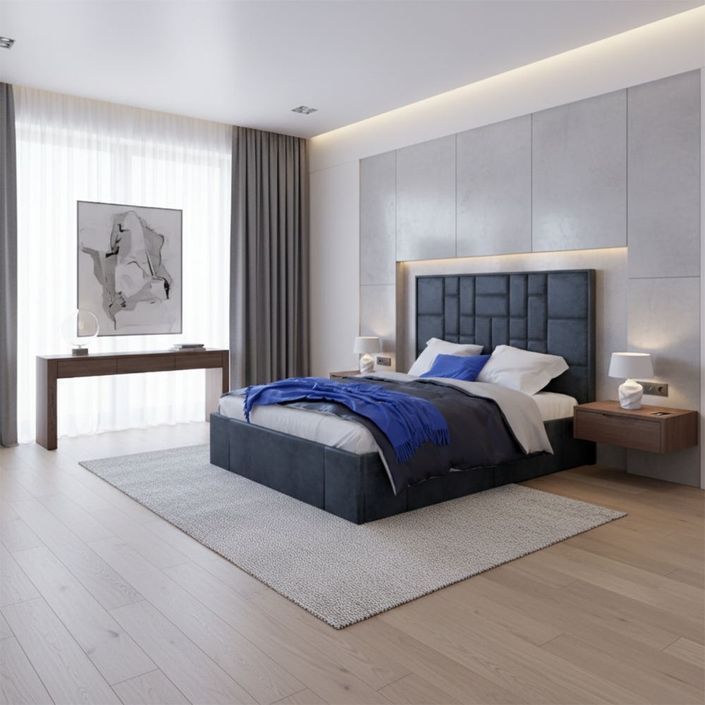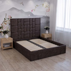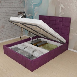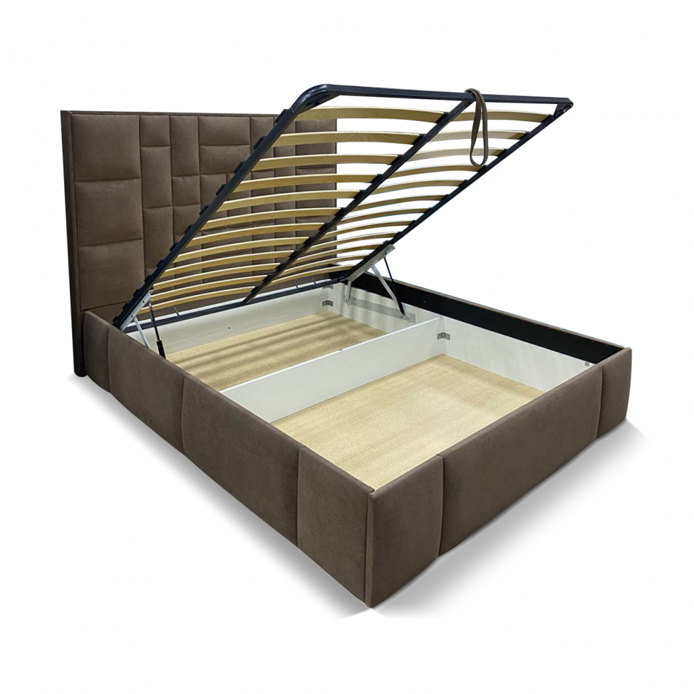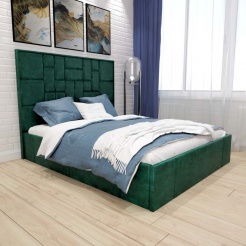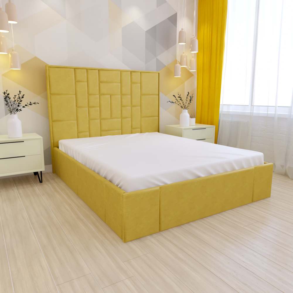С высокой двуспальной кроватью "Larsen" вы получите - много комфорта. А если ещё с подъемным механизмом, то вы приобретете дополнительное место для хранения. Благодаря симметричному геометрическому рисунку на изголовье с велюровой обивкой, с наполнением из пенополиуретана. Эта спальное пространство придает современный вид традиционному дизайну в интерьере. Изготовлена из ламинированной древесно-стружечной плиты. Изготавливаем в разных цветах и размерах. Матрас приобретается отдельно.