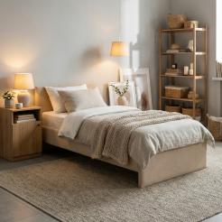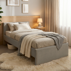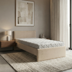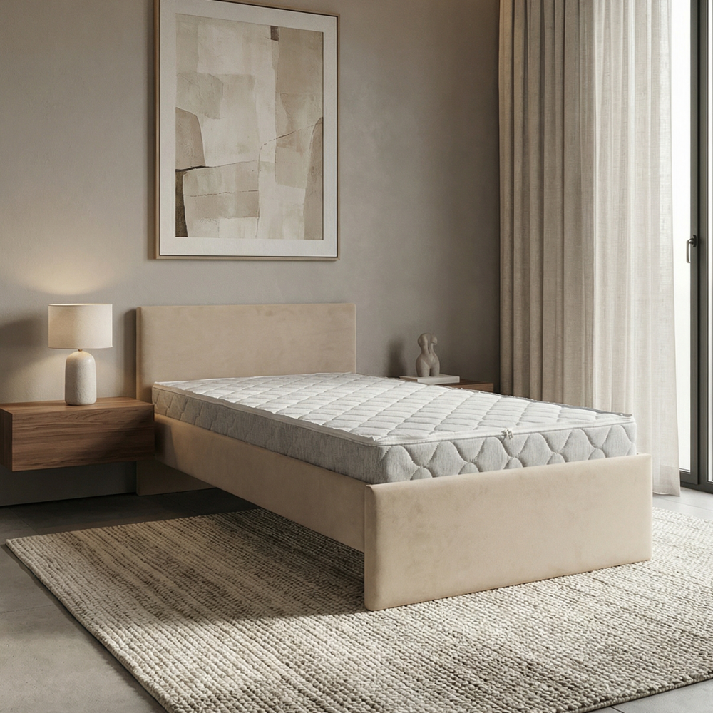 Односпальная кровать №6 — это идеальное решение для создания уюта в вашей спальне. Изготовленная в светло-бежевом оттенке, эта кровать впишется в любой интерьер, добавляя ему современности и элегантности. Мягкое изголовье, выполненное из высококачественного велюра, не только придаёт изделию стильный вид, но и обеспечивает комфорт при отдыхе или чтении книг перед сном.