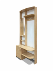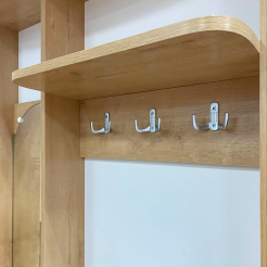 3. Соединить через ФС уголки саморезами 3,5*16 крышу тумбы №3 и стойки тумбы №2. Установить полку под шапки №9 и царгу под крючки №12 между стойками №1,7 с помощью евровинтов.
