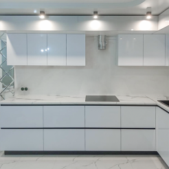 Собственное производство позволяет изготавливать качественные кухни любой сложности, большой выбор материалов и фурнитуры от эконом до премиум сегмента.
