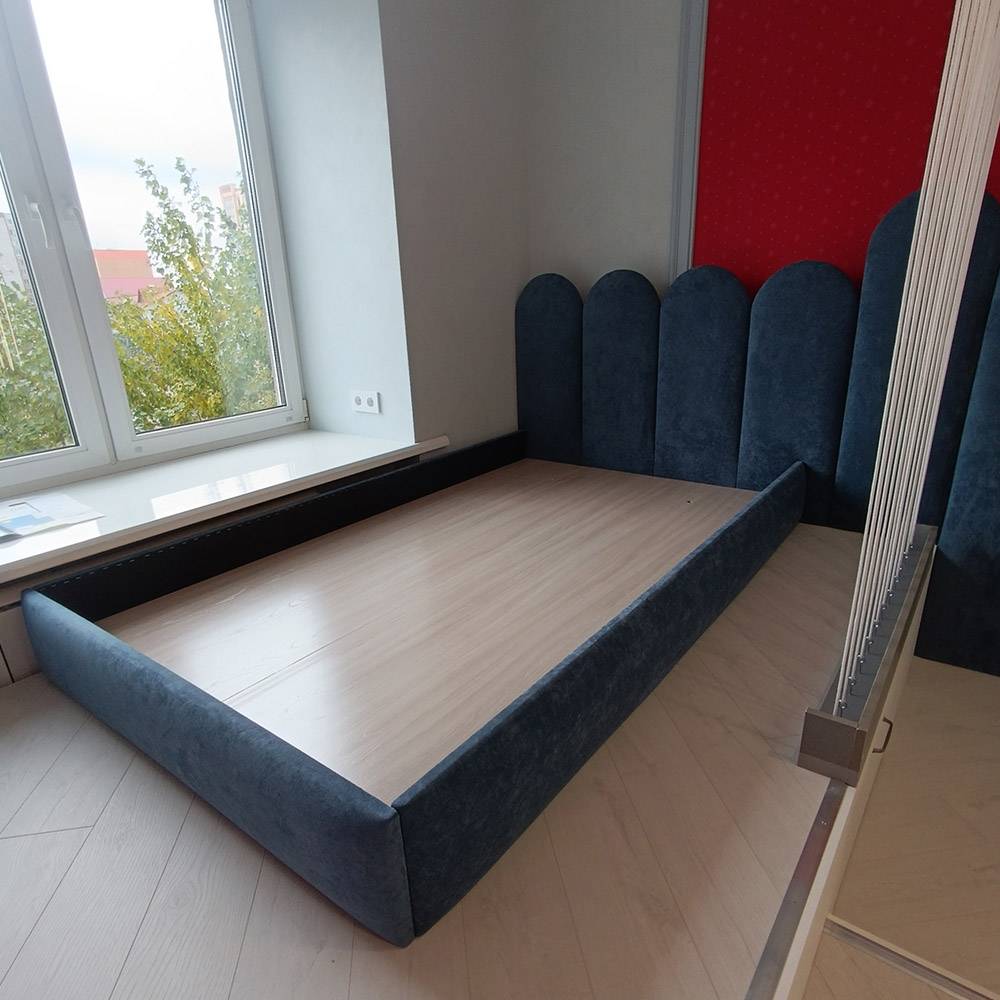 Материалы, которые мы использовали ЛДСП Egger серый пыльный/ Белый премиум, МДФ Ависта Массив Перванж, МДФ Ависта софт крафт, Ависта Риф белый, ткань Desert 11.